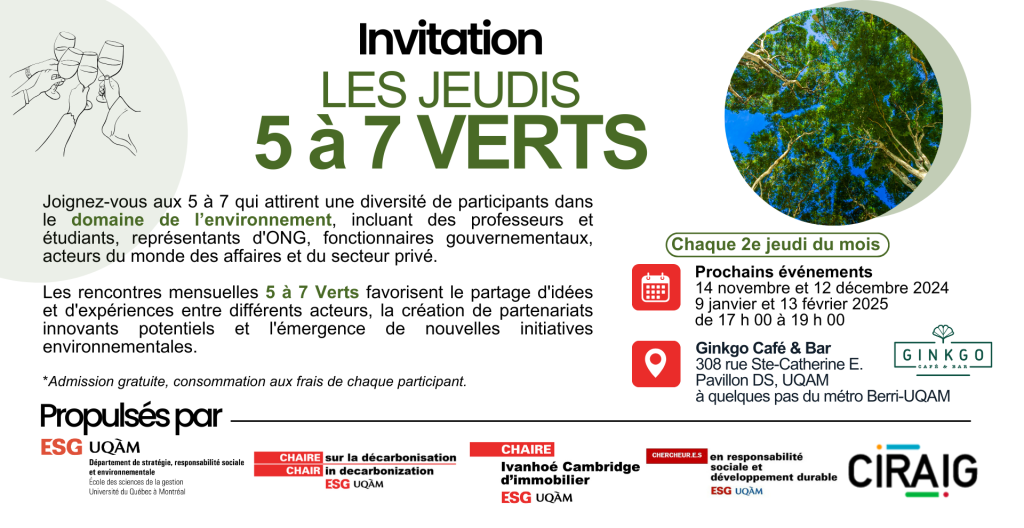 Invitation | Les jeudis 5 à 7 Verts – Chaque 2e jeudi du mois au Pavillon DS de l’UQAM